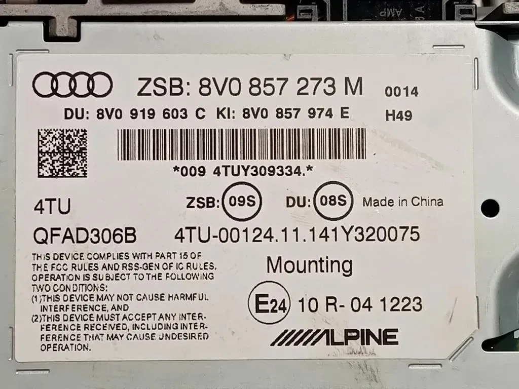 | CodOE | 8V0 857 273 |
