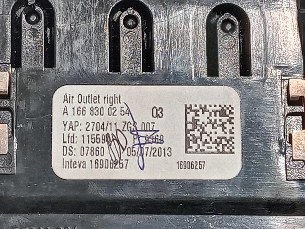 Griglia Condotto ARIA Cruscotto ANT DX Mercedes Classe ML W166 (2012) A166 830 02 54
