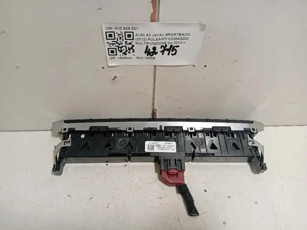 Pulsanti Comando Multifunzione AUDI A3 8VA Sportback (2012) 8V0 925 301