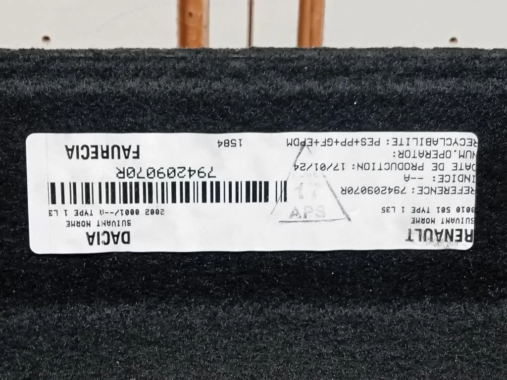 Ripiano Copertura VANO Bagagli Dacia Duster II (2021) RIPIANO COPERTURA VANO BAGAGLI