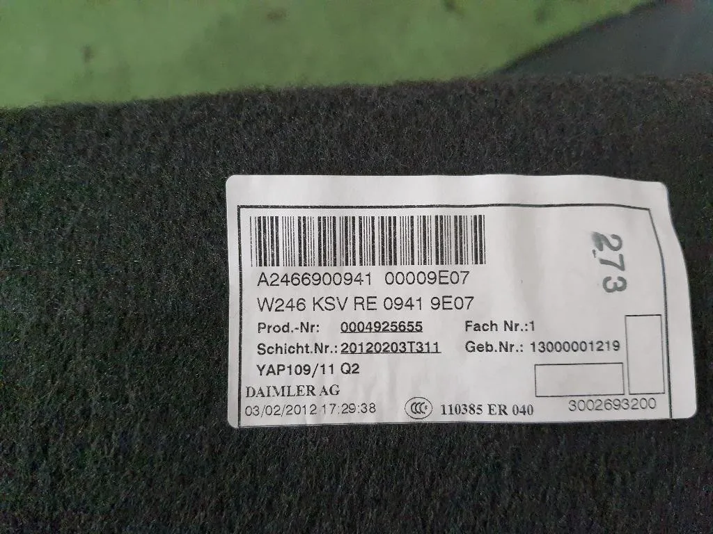 Rivestimento Interno Bagagliaio DX Mercedes Classe B W246 (2012) A24669009419E07