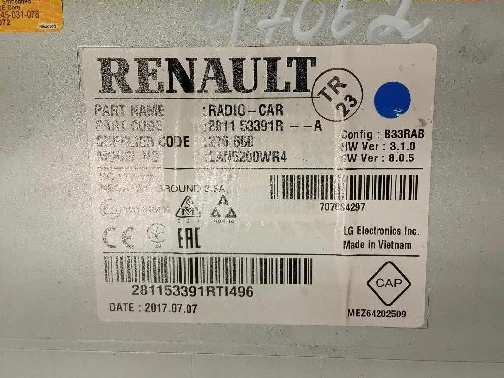 Unità Autoradio Dacia Duster I (2014) 281153391R