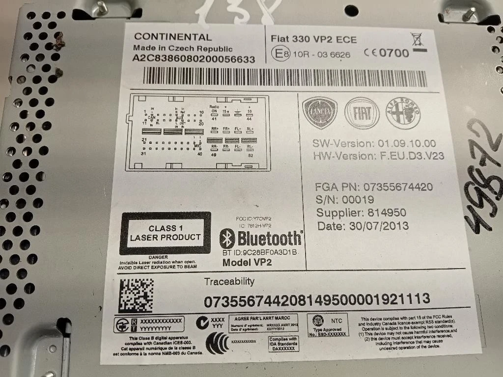 Unità Autoradio FIAT 500L (2013) 07355674420