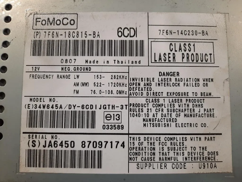 | CodOE | 7F6N-18C815-BA |