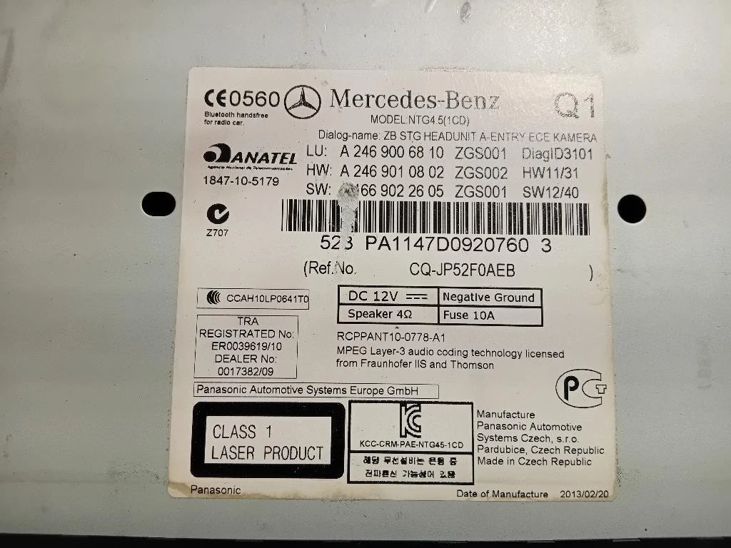 Unità Autoradio Mercedes Classe B W246 (2012) A2469006810