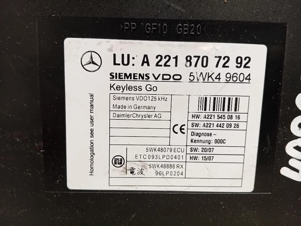 Centralina Keyless GO Mercedes Classe S W221 (2006) A2218707292