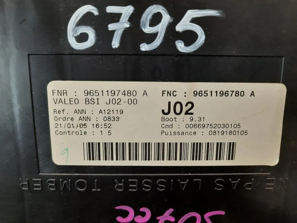 Centralina Scatola Fusibili Peugeot 307 CC (2001) 9651196780A