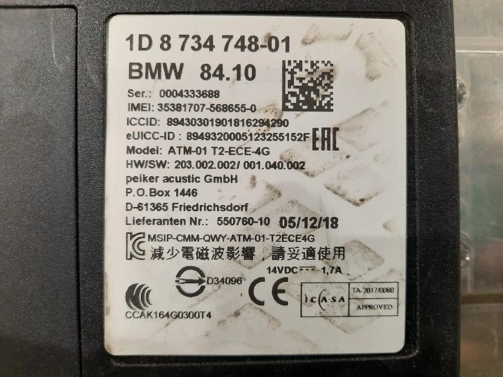 Modulo Bluetooth BMW Serie 1 F20 Berlina (2012) 550760-10