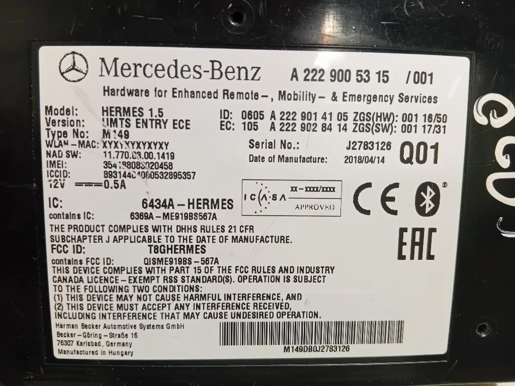 Modulo Bluetooth Mercedes Classe C W205 (2014) A2229005315