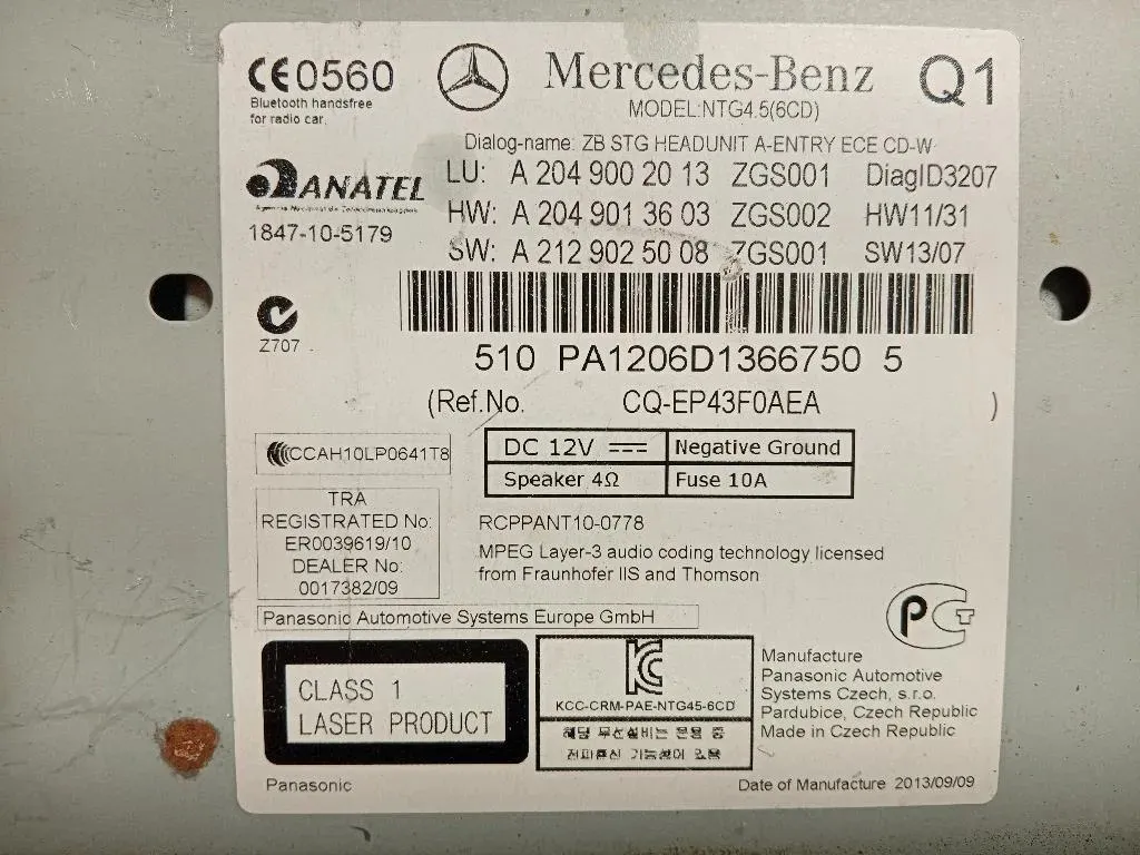 Unità Autoradio Mercedes Classe C W204 (2011) A2049002013