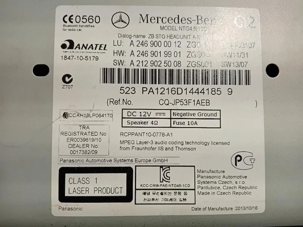 Unita DI Comando Multimediale Mercedes Classe B W246 (2012) A2469000012