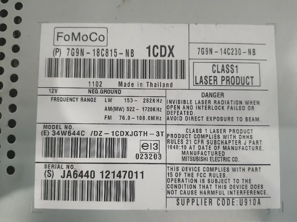 | CodOE | 7G9N-18C815-NB |
