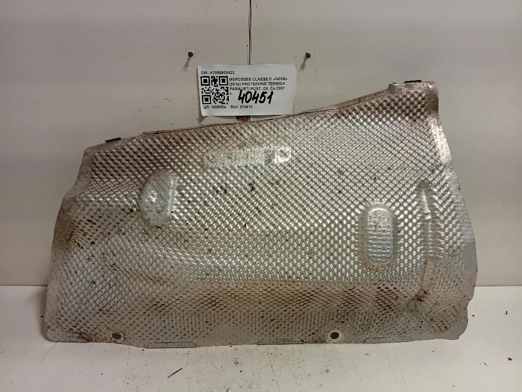 Protezione Termica Paraurti POST DX Mercedes Classe C W205 (2014) A2056800422
